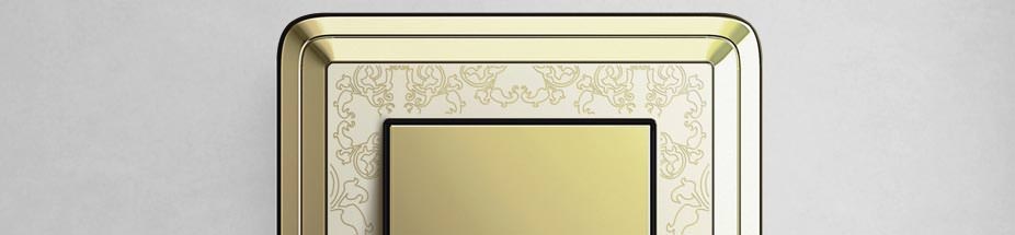 (28.2.2013; BAU 2013-Bericht) Die Schalterprogramme „ClassiX“ und „ClassiX Art“ fallen auf: Statt puristischer Form- und Farbgebung überrascht Gira mit abgerundeten Ecken, gold- und chromglänzenden Oberflächen sowie filigranen Ornamenten. Solch eine Schalterserie wird man beispielsweise erwarten in luxuriösem Wohnambiente in Kombination mit antiken Möbeln - zumal funktional den Ansprüche an eine moderne Elektroinstallation umfassend nachgekommen wird.