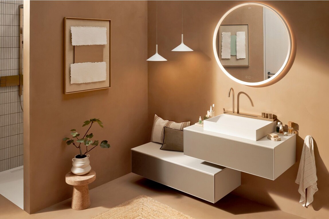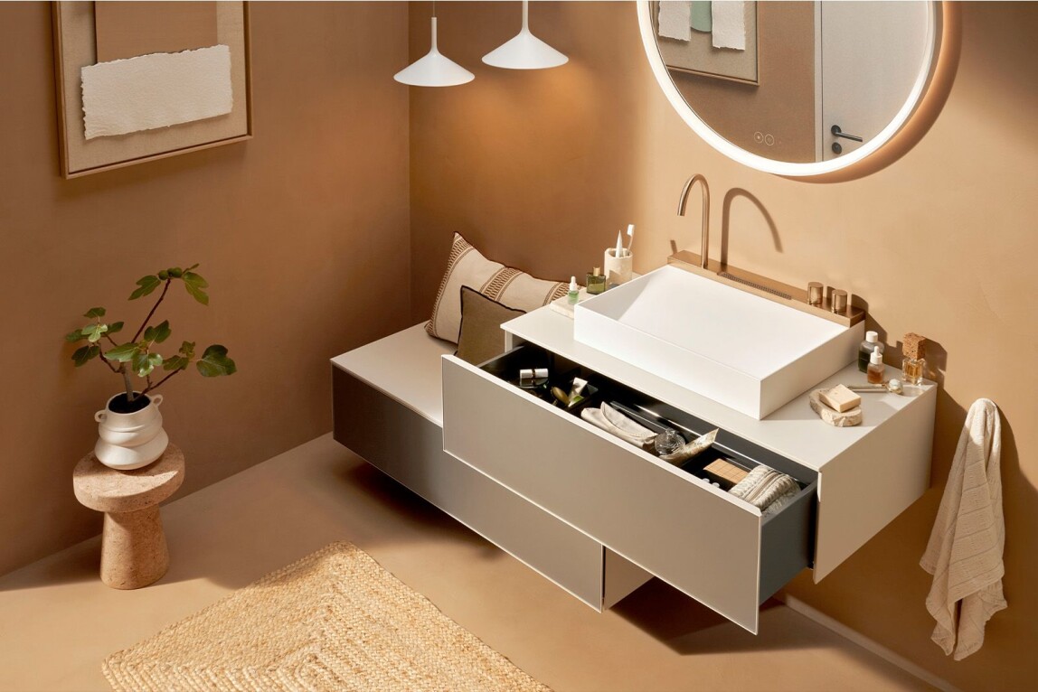 Hansgrohe: Badmöbel Xevolos E erstmals mit Textilfronten