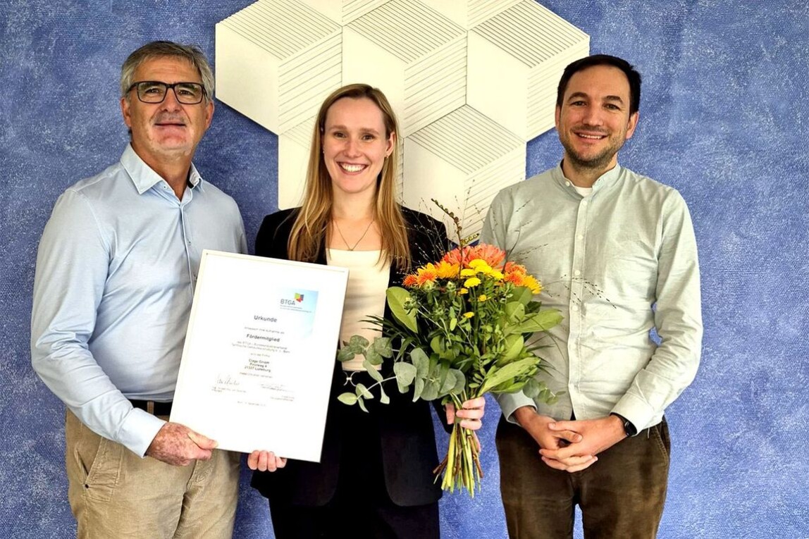 BTGA-Vizepräsident Jan Heckmann überreichte gemeinsam mit Robert von Ascheraden, Geschäftsführer des Landesverbands, die Mitgliedsurkunde an Lea Sophie Welzel, Referentin für Energie und Politik der Clage GmbH. „Wir heißen die Clage GmbH herzlich willkommen und schätzen das Fachwissen, das das Unternehmen in die BTGA-Organisation einbringt”, sagte Jan Heckmann.