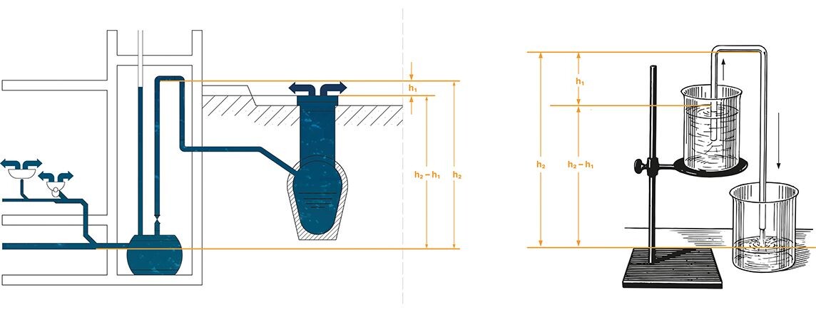 - Rückstauschleifen: Um den Saughebereffekt bei Hebeanlagen auszuschließen, muss die Sohle der Schleife mindestens 0,10 m über der neuen Rückstauebene liegen. Zusätzlich ist an dieser Stelle ein Übergang in die nächstgrößere Nennweite vorgeschrieben; so wird die Druckleitung in eine Freispiegelentwässerung überführt.