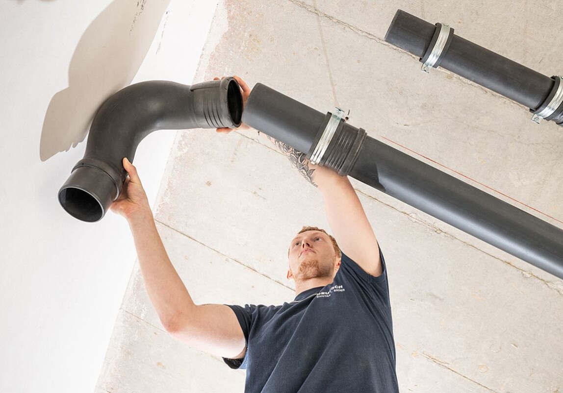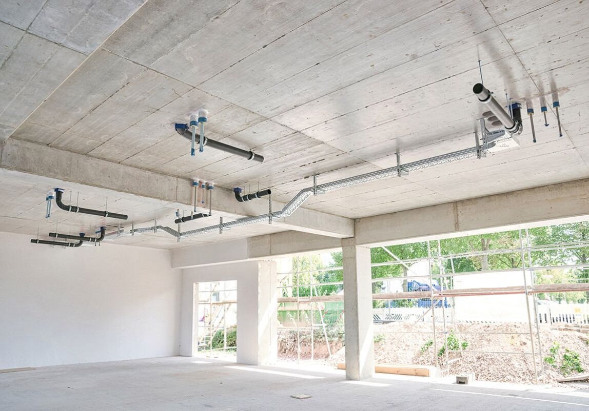 „Bereits bei früheren Projekten stießen wir mit den Vorgaben der DIN 1986-100 an Grenzen”, erinnert sich Fachplanerin Claudia Sanno von der Textor Planungsgesellschaft mbH. „Mit SuperTube konnten wir Fallleitungen jetzt bis zu 6 m waagerecht ohne Gefälle verlegen – etwa in der Durchfahrt und im Versammlungsraum, wo 2,90 m Raumhöhe gefordert waren.”