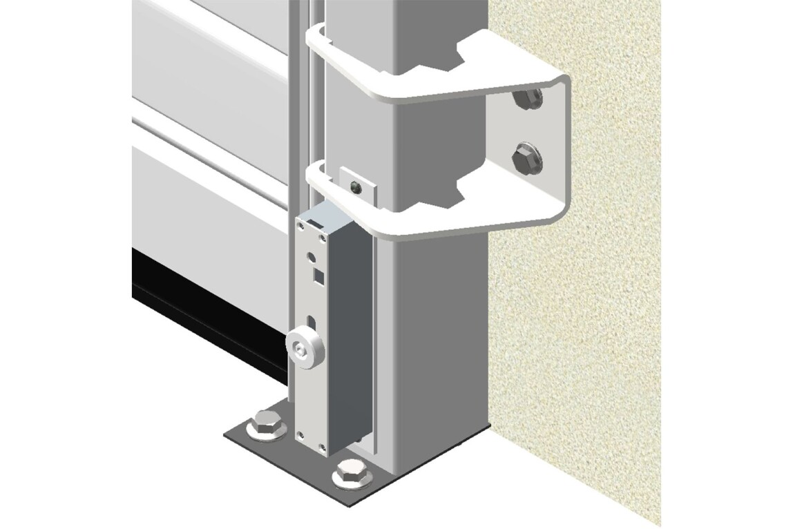 Zum Sicherheitskonzept gehören eine verstärkte Grundplatte, groß dimensionierte Führungsschienen, stabile Sturmhaken und eine Rund-Wickelwelle anstelle der üblichen Achtkantwelle. Eine integrierte Hochschiebesicherung verhindert unbefugtes Öffnen; bei größeren Toren kommen zusätzlich zwei E-Schlösser zum Einsatz.