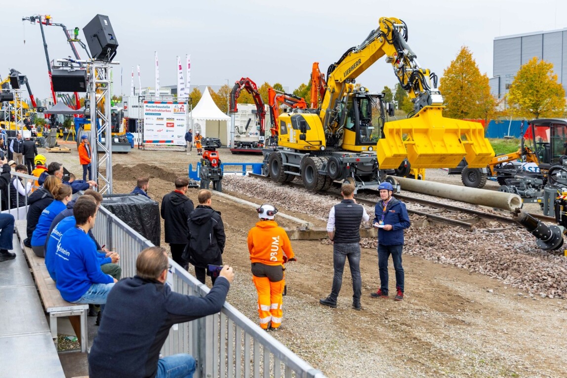 Bei der diesjährigen RATL belegten zahlreiche Aktionsflächen und Musterbaustellen den hohen Nutzen der Demoformate für das Fachpublikum. Die Musterbaustelle Infrastruktur ist als neues Element hinzugekommen. Sie ist die Antwort auf den wachsenden Bedarf von Sanierung im Gleisbau in Deutschland. Die originalgetreue Darstellung der Prozesskette auf der Baustelle wurde seitens der Messe Karlsruhe in enger Kooperation mit dem VDBUM und einem Gleisbauunternehmen aus der Region konzipiert.