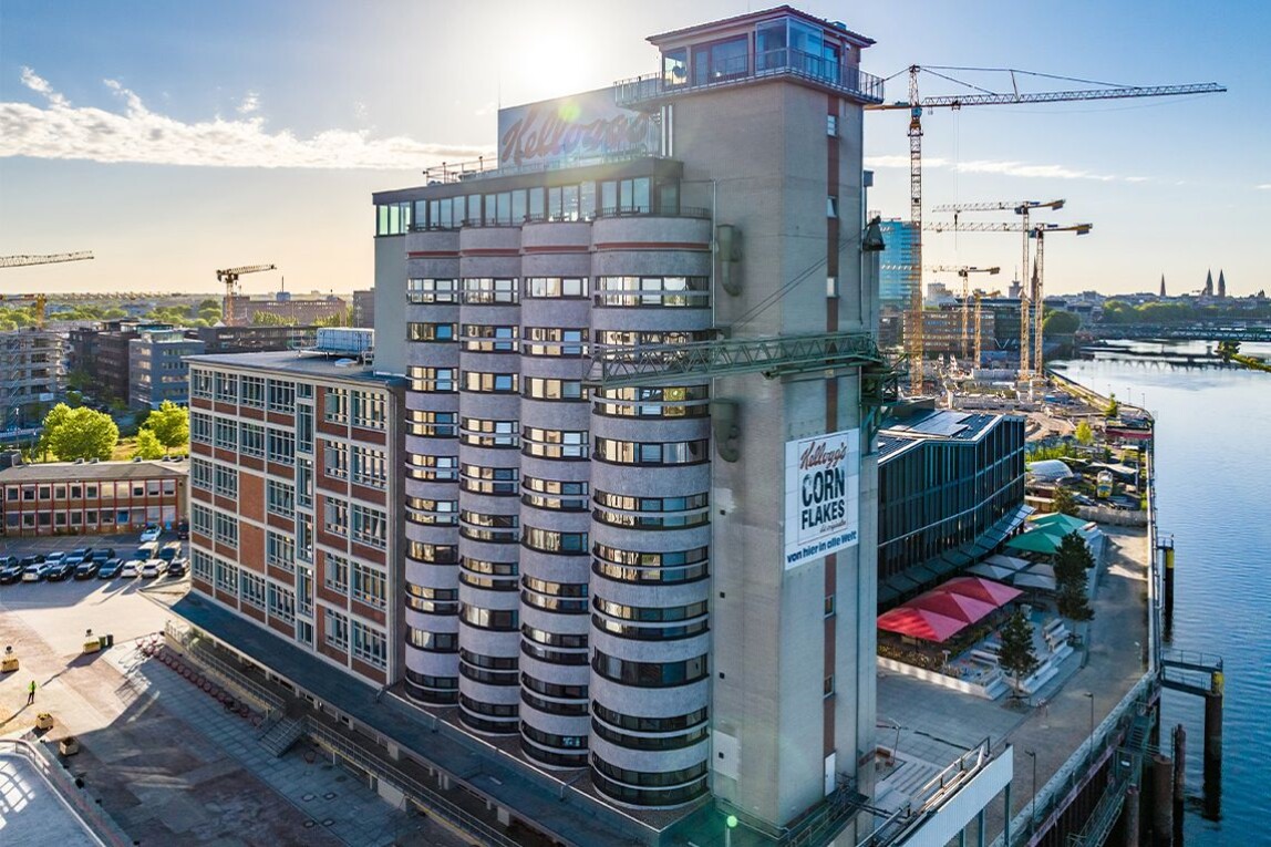 (16.10.2025) Auf der Überseeinsel in Bremen entsteht auf einer ehemaligen Industriebrache ein neues urbanes Quartier direkt an der Weser. Im Zuge dieser Entwicklung wurde das frühere Kellogg’s-Reis-Silo zu einem Hotel umgebaut, dessen runde und halbrunde Zimmer heute einen einzigartigen Blick auf die Bremer Skyline bieten. Zentrale Aufgabe aller beteiligten Gewerke war es, Bestehendes zu bewahren und zugleich nachhaltig für die Zukunft zu gestalten. Als Teil des neuen Brandschutzkonzeptes kamen dabei Brandschutztüren von Teckentrup zum Einsatz.