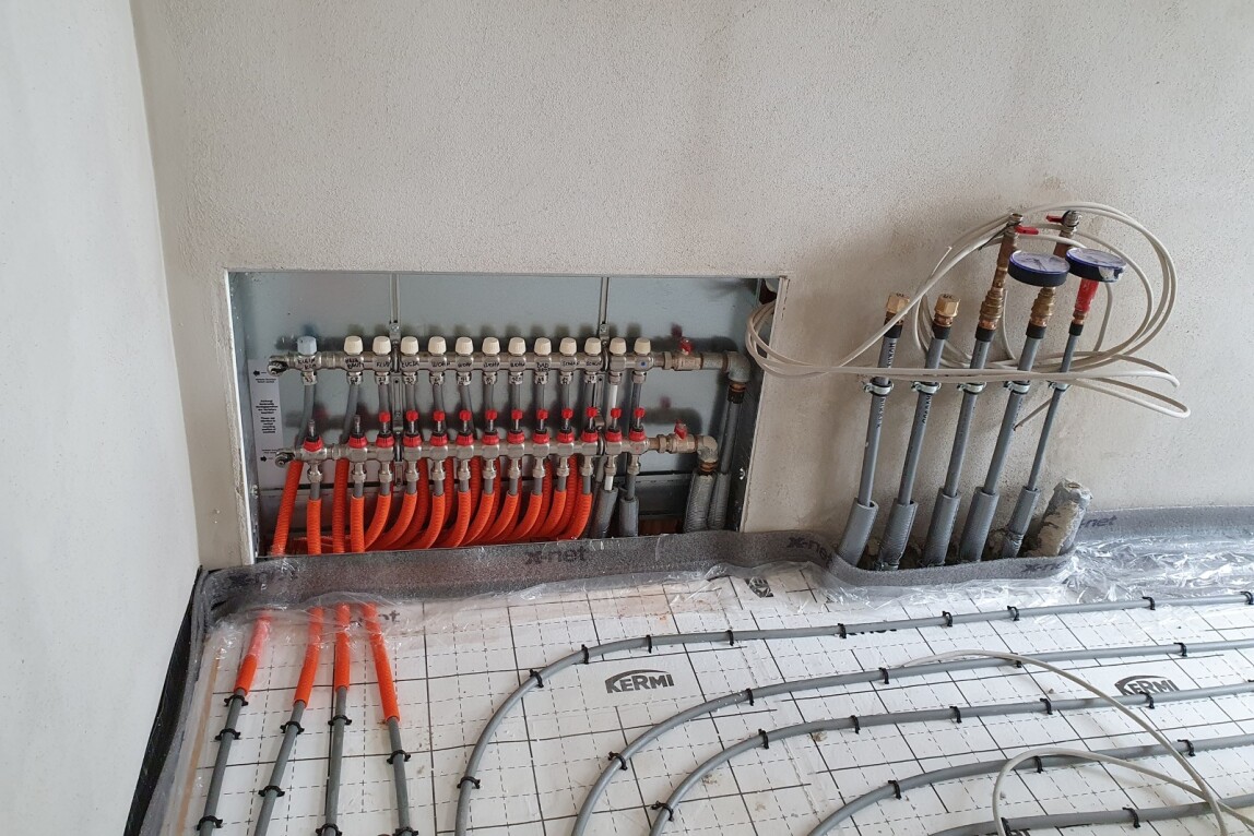 Um eine effiziente Wärmeverteilung und optimale Behaglichkeit zu erreichen, entschied sich der Bauherr für eine Flächenheizung/-kühlung. Zum Einsatz kam das x-net C12 Tackersystem, das mit großformatigen Tackerrollen eine einfache Verlegung der Dämmschicht ermöglichte. Durch den seitlichen Folienüberstand und die integrierten Selbstklebestreifen konnte der Installateur die Platten zügig und fließestrichdicht verbinden. Mithilfe der einzigartigen x-net-Abrollvorrichtung konnten die Heizrohre drallfrei aus der Verpackung abgerollt und mit dem x-net Tackergerät sicher fixiert werden. Die hochreißfeste Ankergewebefolie sorgt für hohe Trittfestigkeit und einen zuverlässigen Halt der x-net Rohranker. Im oberen Bereich des Bungalows wurde eine Wandheizung/-kühlung installiert. Zum Einsatz kam das x-net C21 Putzsystem, das dank geringer Rohrüberdeckung reaktionsschnell arbeitet.