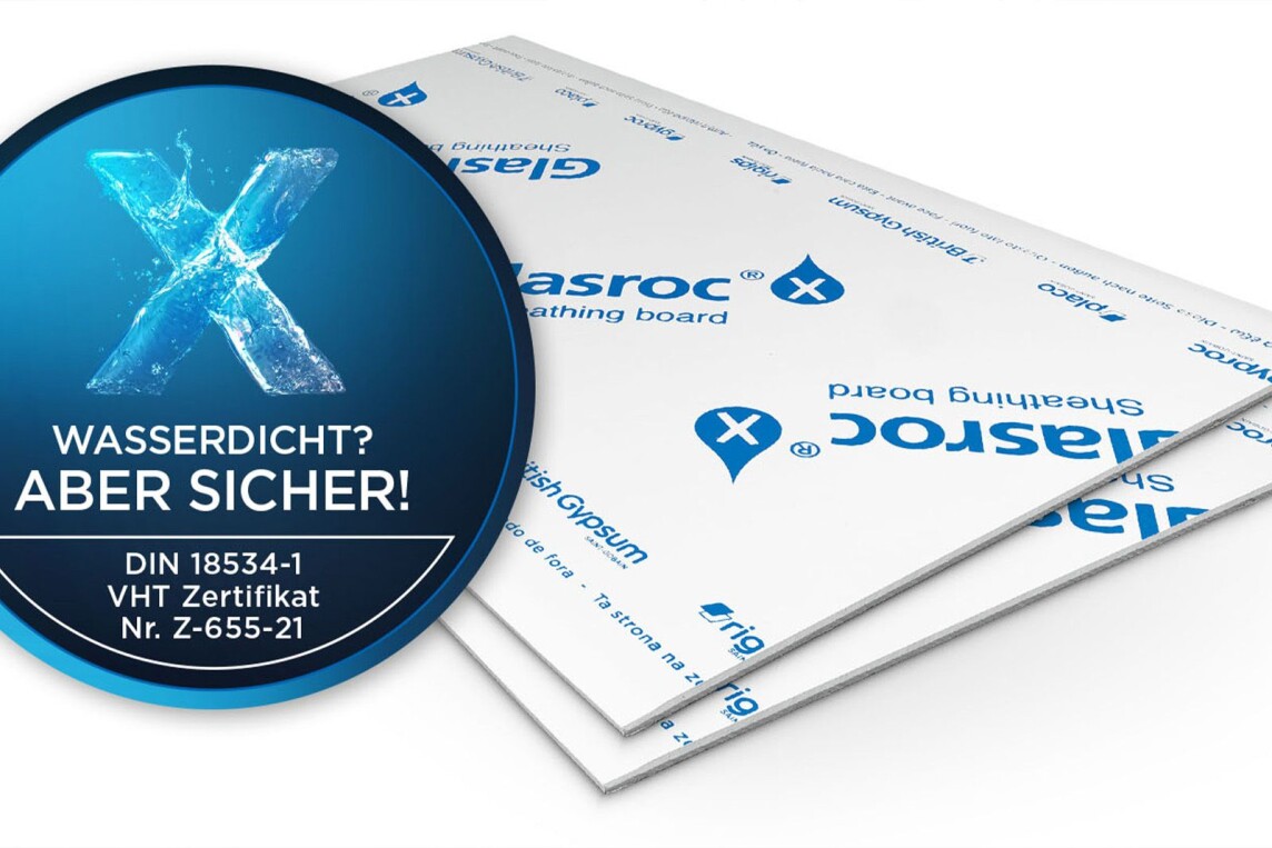 Das VHT-Zertifikat Nr. Z-655-21 bestätigt die Eignung von Rigips Glasroc X als Abdichtungsuntergrund in der Wassereinwirkungsklasse W3-I, wodurch die Spezialgipsplatte nicht nur technisch, sondern auch in erweitertem Umfang normgerecht einsetzbar ist. Die feuchte- und schimmelresistente Platte empfiehlt sich als Alternative zu zementbasierten Platten.