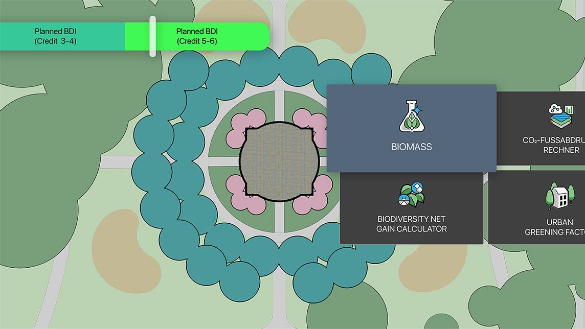 Das neue Nachhaltigkeits-Dashboard ermöglicht die Echtzeitüberwachung ökologischer Kennzahlen wie CO₂-Fußabdruck, Biodiversitäts-Nettozuwachs, Biomasse oder Grünfaktor. Weitere Indikatoren sollen in kommenden Updates und Versionen folgen.