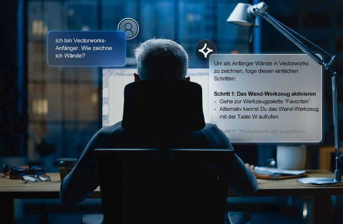 Der AI Assistant (Vorschau) unterstützt bei Routineaufgaben, beantwortet technische Fragen und erleichtert das Erlernen neuer Funktionen. Direkt in die gewohnte Vectorworks-Umgebung integriert, lernt der AI Assistant kontinuierlich dazu und passt sich individuellen Arbeitsweisen an.