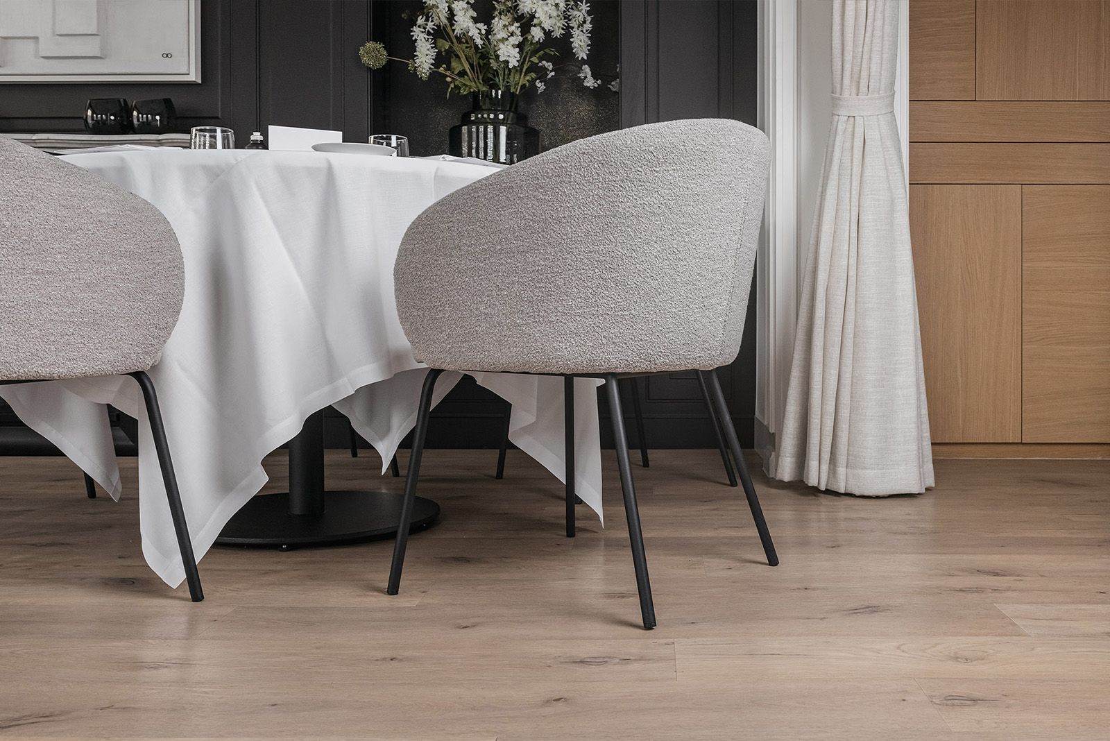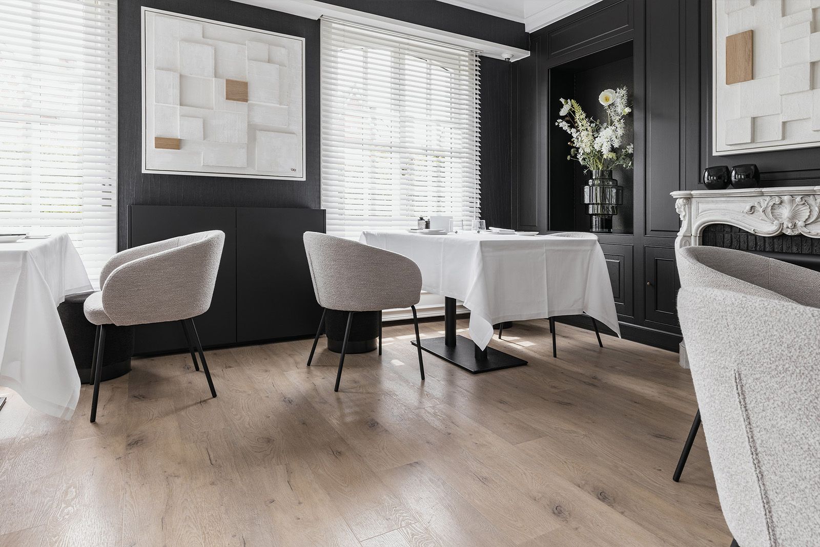 Die Holzoptik der Dielen fügt sich in das Gestaltungskonzept des Restaurants ein und ergänzt die bestehende Ausstattung. Durch das Zusammenspiel aus Materialbeständigkeit und optischer Wirkung, konnte eine Verbindung zwischen Funktionalität und gestalterischer Kontinuität geschaffen werden.