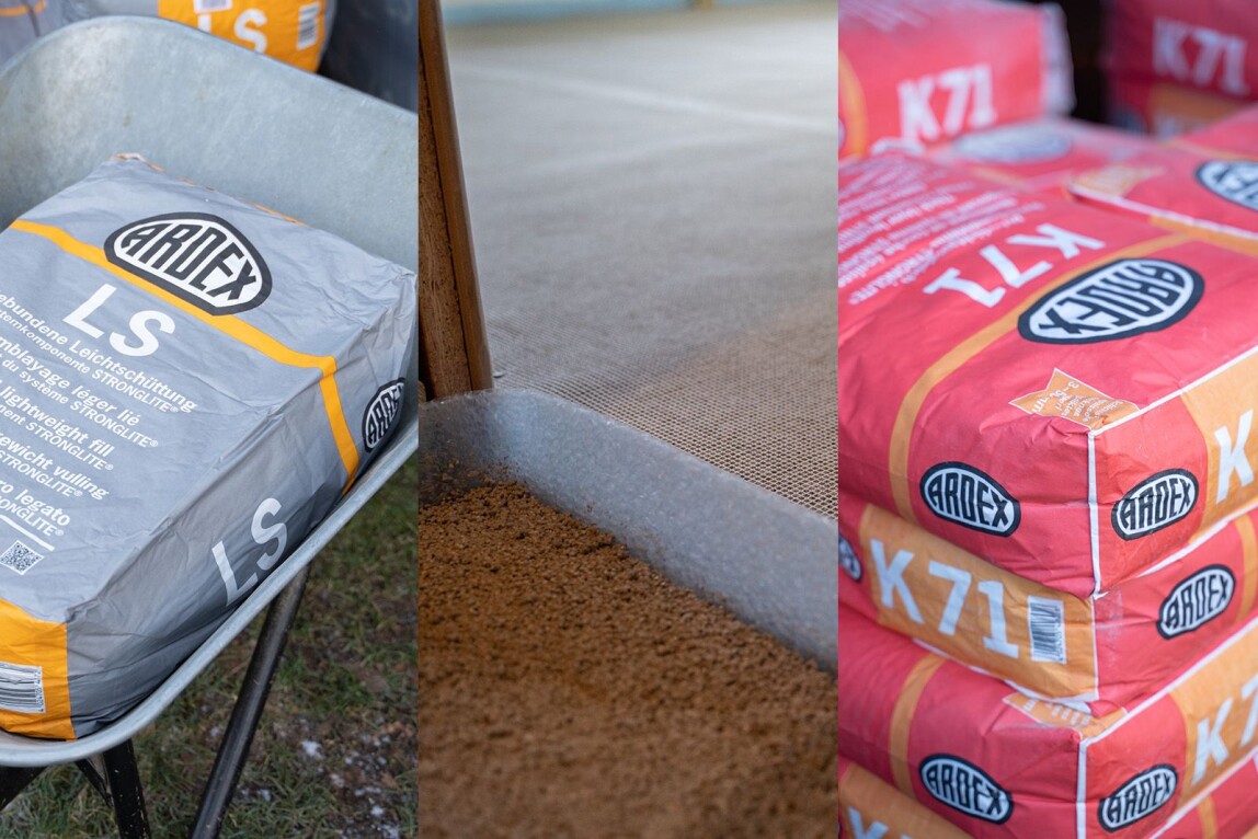 - Einbringen der gebundenen Leichtschüttung Ardex LS zum Ausgleich von Unebenheiten und Hohlräumen,