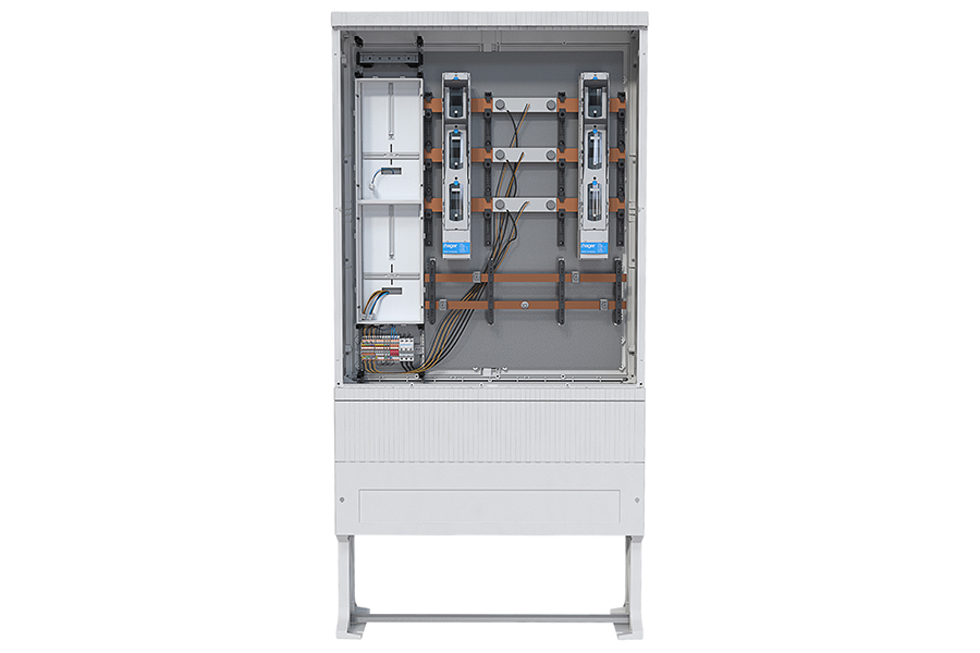 Zudem wird für 3-Punkt-Zähler ein Hauptschalter im AAR verpflichtend. Diese Maßnahme erhöht die elektrische Sicherheit und ermöglicht ein einfaches Freischalten der Versorgung. Hager bietet hierfür vorverdrahtete Hauptschalterlösungen für seine einbaufertigen Komplettschränke und -felder an, die den Normanforderungen entsprechen.