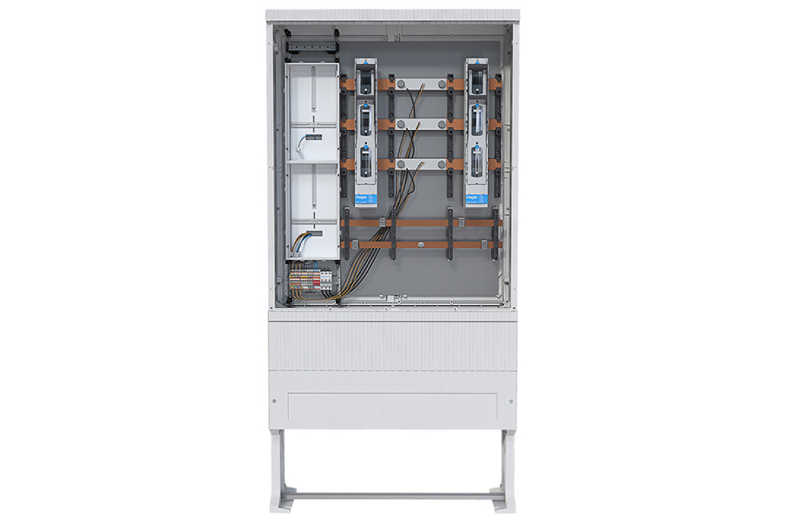 Das Hager-Portfolio umfasst vorverdrahtete Komplettschränke und -felder für Primärströme bis 100 A, bis 200 A und über 200 A. Sie werden in Mehrfamilienhäusern mit PV-Anlagen, in Gewerbegebäuden oder bei Außeninstallationen wie Ladeinfrastrukturen und Freiland-PV-Anlagen eingesetzt. Die Anlagen erfüllen die Vorgaben der novellierten VDE-AR-N 4100:2026 und ermöglichen eine zeit- und normkonforme Installation, da eine zusätzliche Anlagenprüfung entfällt.