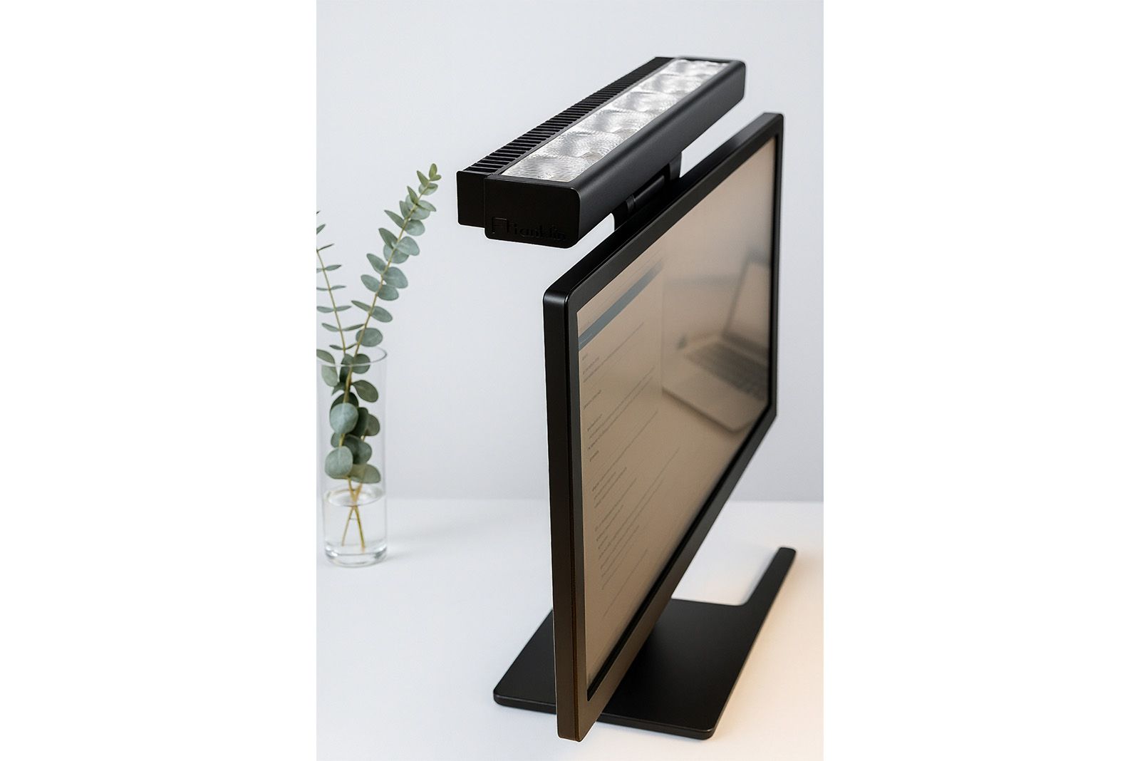 Mit 2,8 kg Gewicht und Maßen von 505 × 113 × 44 mm ist die Leuchte kompakt genug, um vollständig hinter einem 27-Zoll-Monitor zu verschwinden. Das Aluminiumgehäuse ist pulverbeschichtet und kann auf Wunsch kundenspezifisch lackiert werden.