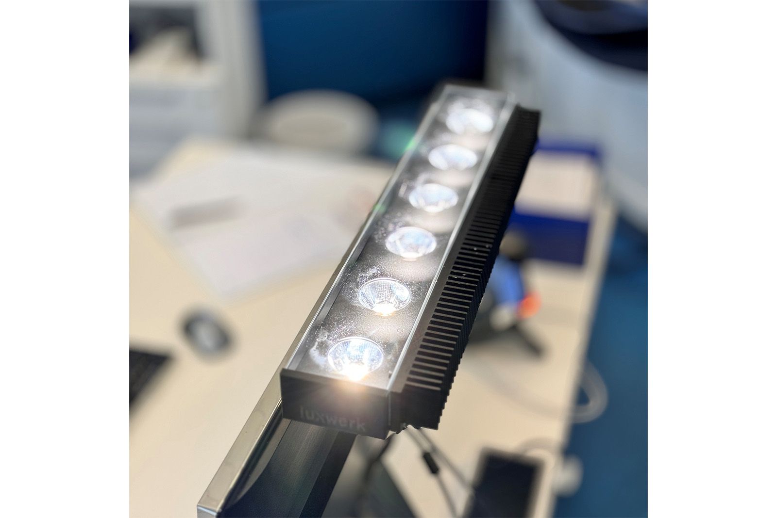 (13.11.2025) Das Fraunhofer-Institut für Bauphysik IBP und die Lichtmanufaktur Luxwerk haben gemeinsam eine neue Büroleuchte entwickelt, die den Anforderungen moderner Arbeitsumgebungen an Ressourceneffizienz, Flexibilität und Lichtqualität gerecht werden soll. Das Fraunhofer IBP zeichnete für die Konzeption der Monitorleuchte X.screen verantwortlich, während Luxwerk den Prototypenbau sowie die Serienfertigung übernimmt.