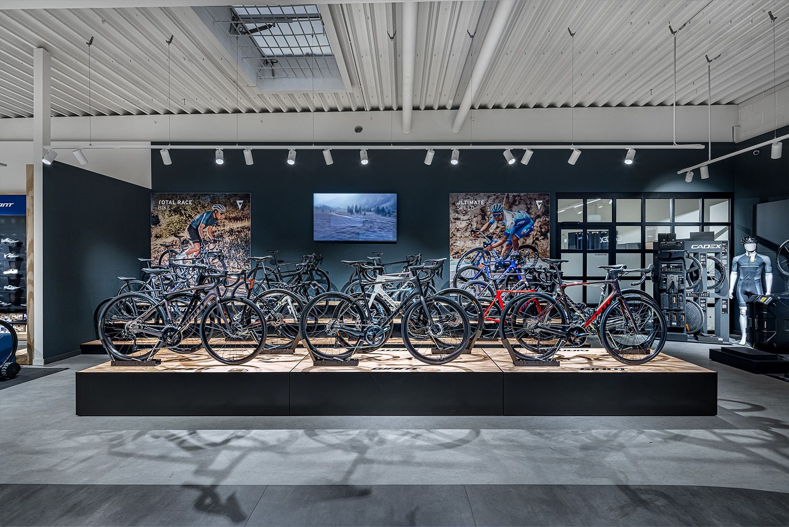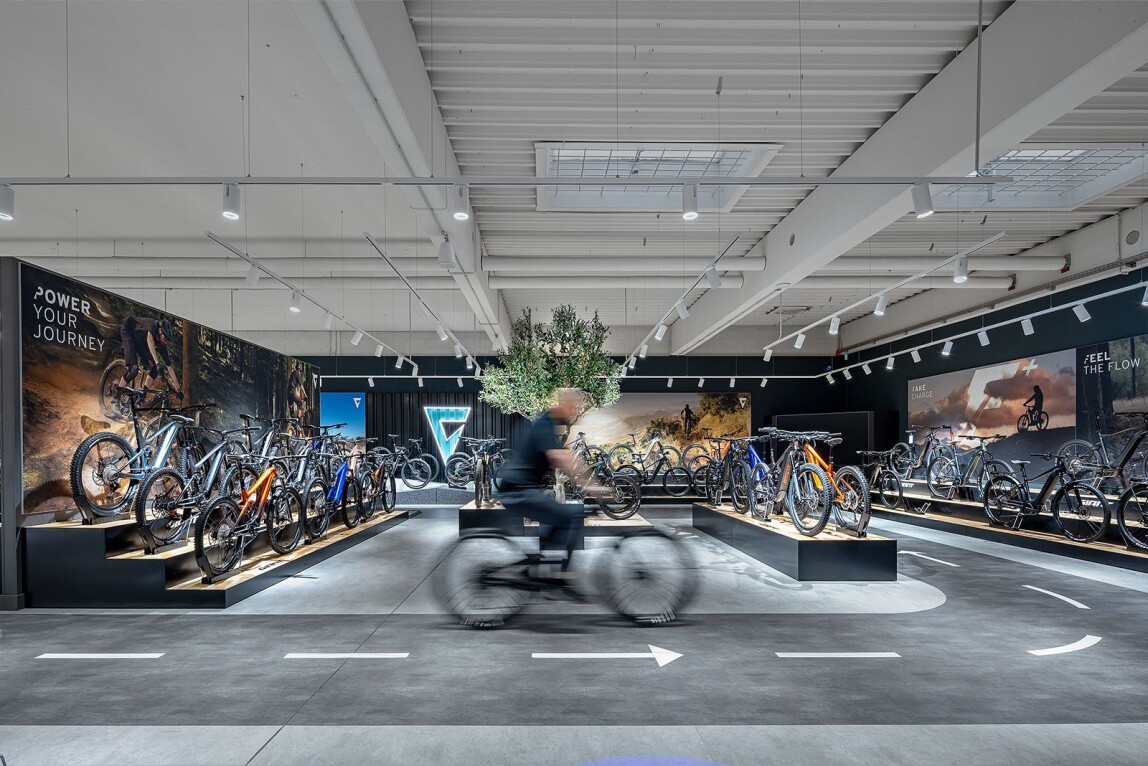 Mehr als 500 dieser Spots wurden im Store installiert, ergänzt durch VIVO II Pendelleuchten über der Verkaufstheke. Bei der Lichtplanung wurde exakt berücksichtigt, wo künftig Kinderräder, Rennräder oder Mountainbikes stehen, um jedes Produkt ideal auszuleuchten.