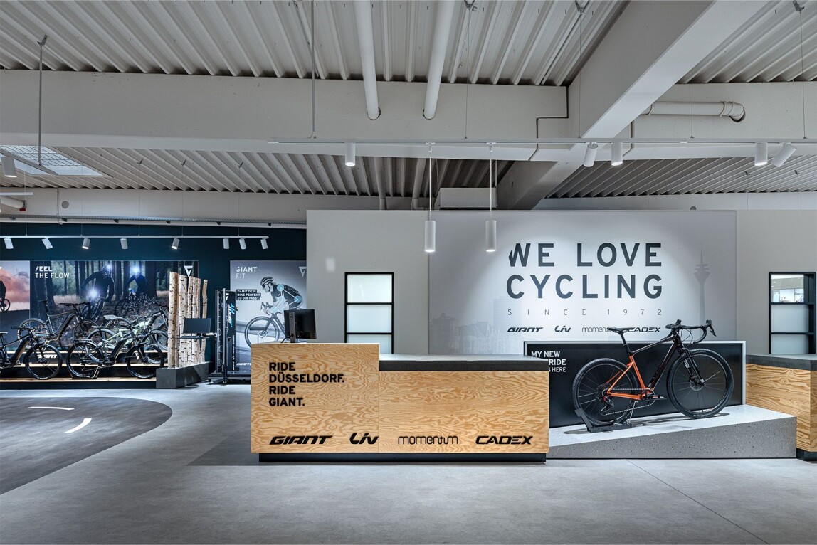 (13.11.2025) Im Düsseldorfer Osten bietet der Flagshipstore von Giant Freizeit- und Profi Radfahrern auf 1.250 m² Gesamtfläche alles, was das Herz begehrt. Der Store dient dabei als Innovationshub und Vorbild für Franchisenehmer des Fahrradherstellers. Auf den 220 Stellplätzen können Besucher Räder der Marken Giant, Liv und Momentum entdecken. Das Sortiment wird durch Zubehör von Cadex sowie durch Fahrradbekleidung und Taschen ergänzt.