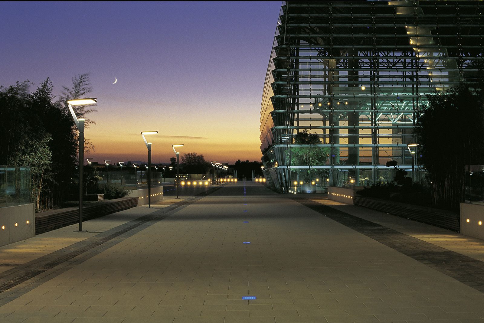 Diese Aufgaben werden durch Lichtmanagement und Sensorik automatisch übernommen und sie passen die Beleuchtung dem jeweiligen Personen- und Fahrzeugverkehr an. Jede Leuchte lässt sich einzeln oder in Gruppen adressieren. Jürgen Waldorfs Tipp: „Nicht vergessen, auch die Randbereiche in das Beleuchtungskonzept einzubeziehen.”