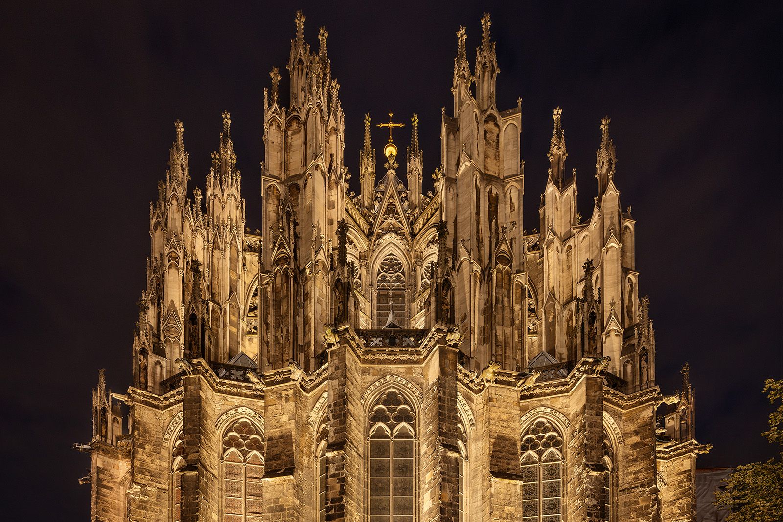 In Zusammenarbeit mit der Dombauhütte und der RheinEnergie AG entstand ein System mit mehr als 700 Leuchten. Diese sind als kompakte, blendfreie Einheiten direkt an und vor der Fassade installiert und tagsüber nahezu unsichtbar. Nur etwa 10 % der Lichtquellen befinden sich außerhalb des Gebäudes – zuvor waren es 80 %. Dadurch wurde die Lichtstreuung deutlich reduziert.