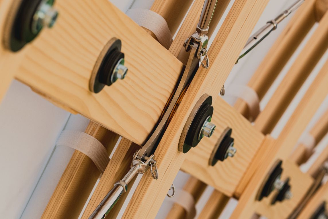 Möglich wird die Methode durch ein mathematisches Verfahren zur Ermittlung sogenannter Geodäten – der kürzesten Verbindungslinien auf gekrümmten Flächen. Auf dieser Grundlage lässt sich die spätere Wölbung gezielt planen. Eine spezielle Holzverbindung sorgt dafür, dass die einzelnen Elemente dauerhaft belastbar bleiben.