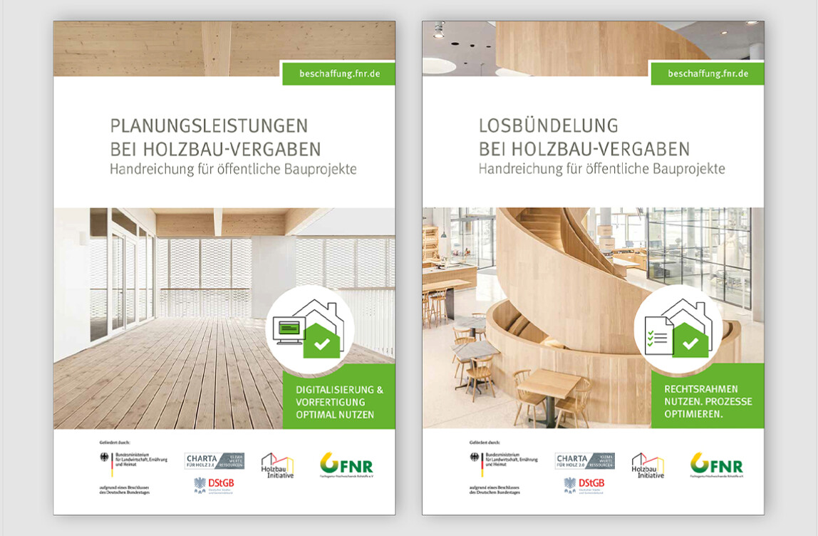 Die Handreichungen stehen kostenfrei in der Mediathek von FNR unter mediathek.fnr.de/vergabe-planungsleistungen-holzbau.html und mediathek.fnr.de/zusammenfassung-einzellose-holzbau.html zur Verfügung.