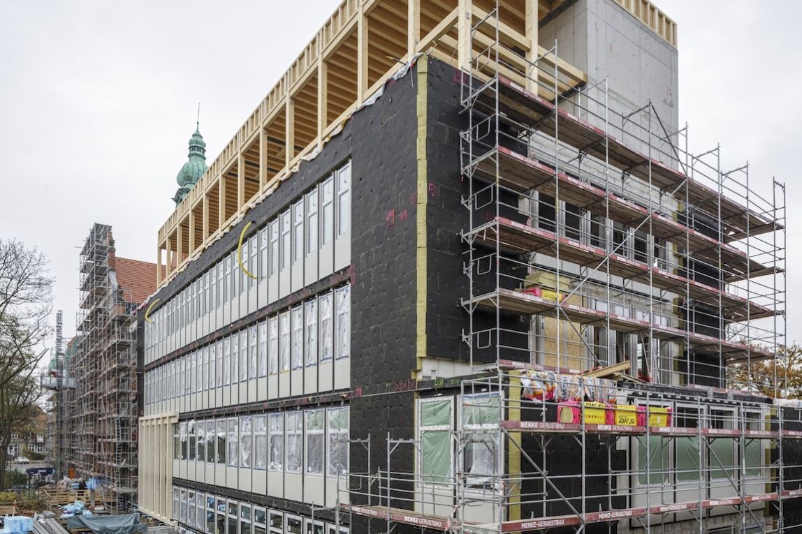 Bevor der Neubau errichtet werden konnte, wurden im Bestandsgebäude Schadstoffe entfernt und ein Erweiterungsbau aus den 1960er-Jahren zurückgebaut. Die Rohbauarbeiten des Neubaus begannen im Herbst des vergangenen Jahres und wurden nun erfolgreich abgeschlossen. Die bauliche Fertigstellung und Übergabe sind für 2027 vorgesehen.