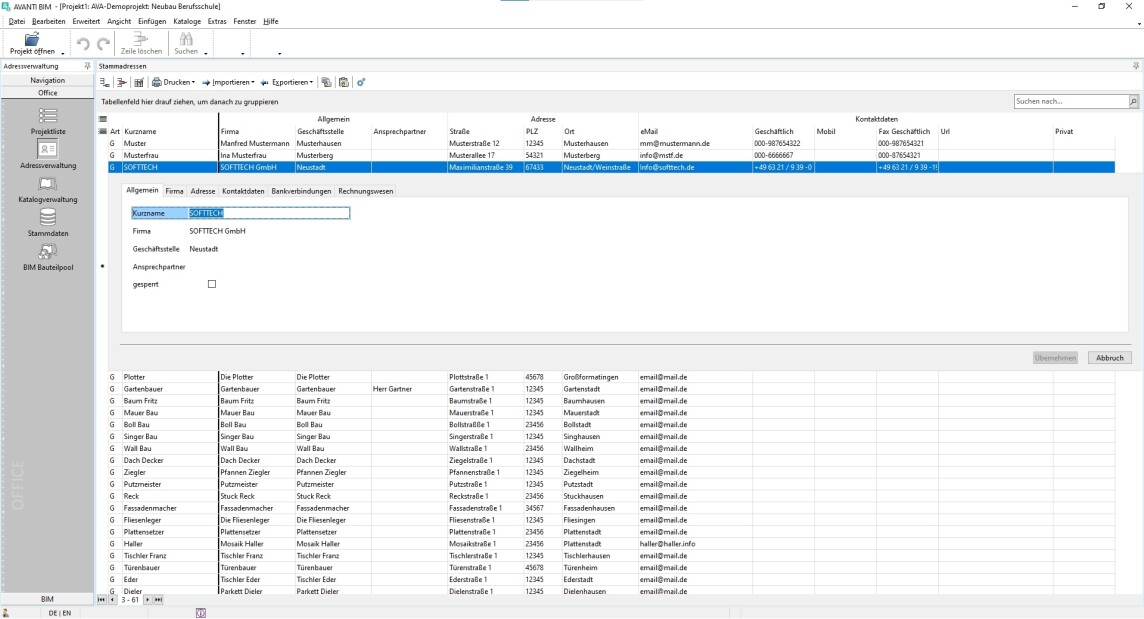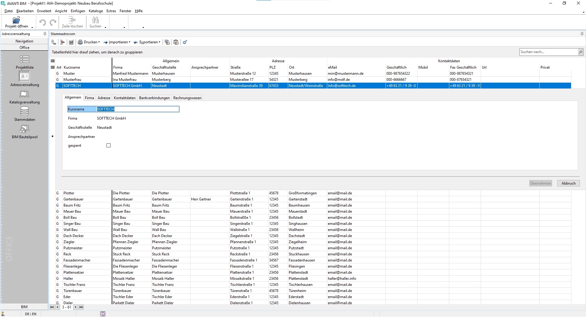 Zu einer flexibleren und komfortableren Arbeitsweise sollen auch die neue Adressverwaltung und der Assistent für den Export von E-Rechnungen (X-Rechnung und ZUGFeRD) beitragen. Zudem befindet sich Avanti 2026 in Vorbereitung für das neue, aktuelle GAEB-Datenformat GAEB DA XML 3.3.