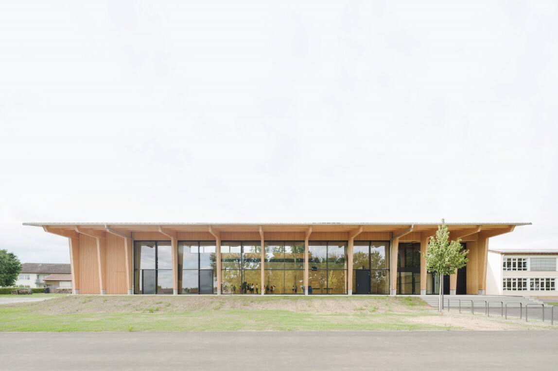 Im Wettbewerb ließ die Gemeinde offen, ob die sanierungsbedürftige Mehrzweckhalle erhalten bleibt oder einem Neubau weichen muss. Das Stuttgarter Büro Atelier Kaiser Shen entschied sich für den maximalen Erhalt und erhielt den Zuschlag. Mit einzelnen präzisen Eingriffen und unter aktiver Einbindung der Bürger, gelang es, die bauliche Identität der Halle aus den 1960er Jahren zu bewahren und zugleich eine eigene gestalterische Handschrift einzubringen.