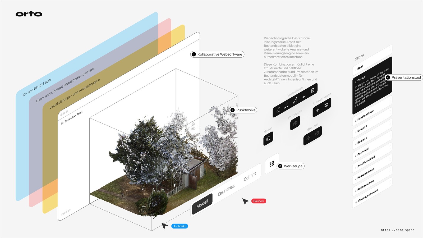 Die Softwarelösung unterstützt Unternehmen der Bauindustrie bei der Erkennung von Weiternutzungspotentialen und Steuerung von Bestandsprojekten. Durch einen Komprimierungsalgorithmus und ein intuitives Interface werden sensorische Gebäudedaten mittels Web-Browser für Analyse, Planung und Co-Produktionsprozesse nachhaltig nutzbar.