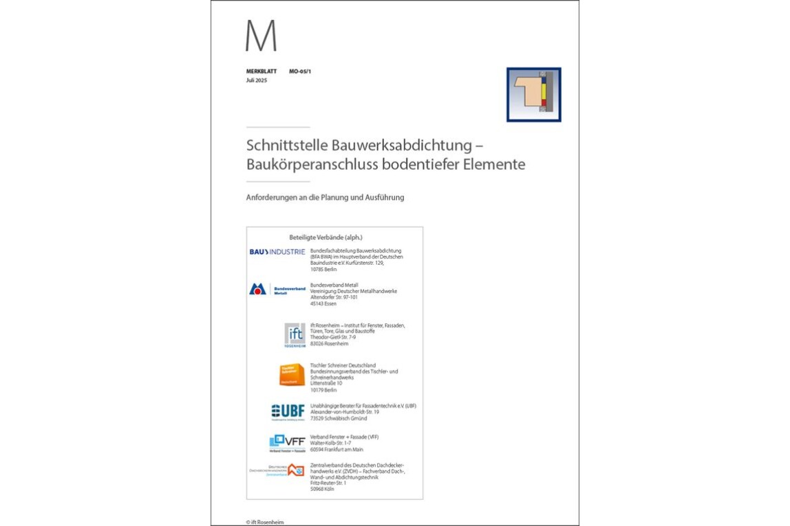 (4.12.2025) Um die kritische Schnittstelle zwischen den Gewerken und der Bauwerksabdichtung besser zu managen, haben alle beteiligten Verbände unter Federführung des ift Rosenheim gemeinsam das Merkblatt MO-05/1 „Schnittstelle Bauwerksabdichtung – Baukörperanschluss bodentiefer Elemente – Anforderungen an die Planung und Ausführung” erstellt.