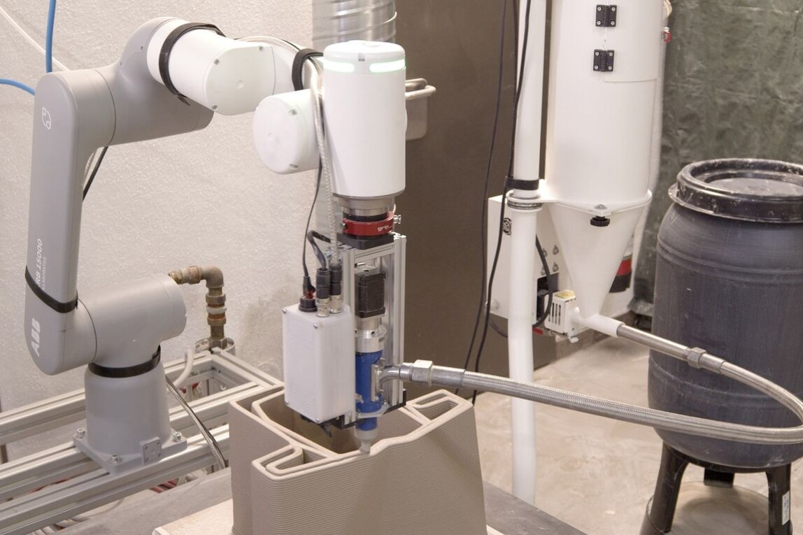 Der Cobot wurde mithilfe der ABB-Software RobotStudio eingerichtet. Über die Benutzeroberfläche konnten die Forscher in der Programmiersprache Python entwickelte Druckpfade für Bewegungsabläufe simulieren, optimieren und anschließend auf den Roboter übertragen. Für wechselnde Geometrien und Bauteilpositionen war die Möglichkeit der handgeführten Programmierung („Lead Through”) hilfreich.