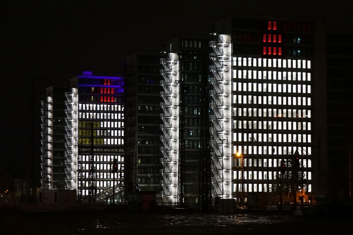 Ten Towers in München: Hochhaus-Ensemble wird zum größten Adventskranz Deutschlands