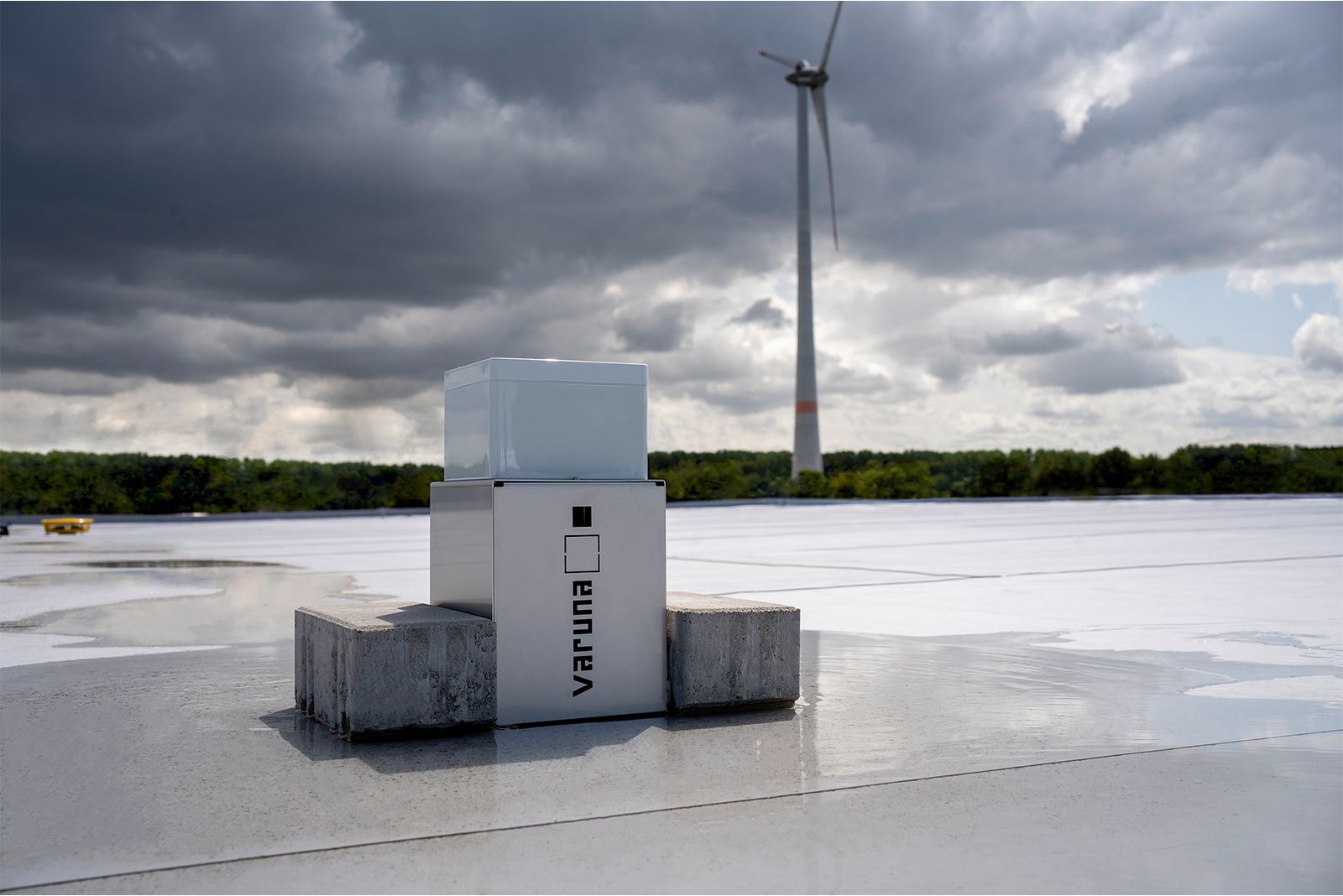 Vor dem Hintergrund zunehmender Wetterextreme und fortschreitender Digitalisierung verfolgt Varuna einen ganzheitlichen Ansatz zur Überwachung von Flachdächern. Der Regenwächter ist autark konzipiert und mit Photovoltaik-Modulen ausgestattet. Dadurch entfallen Leitungsverlegungen auf dem Dach sowie der regelmäßige Batteriewechsel. Eine Solarzelle mit Akku stellt die Stromversorgung auch bei längeren sonnenarmen Phasen sicher.