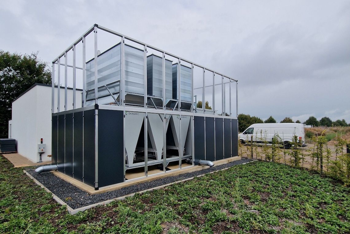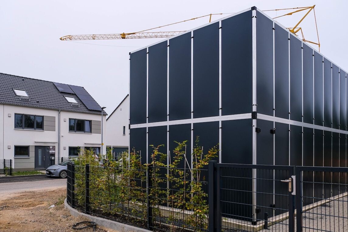 (19.12.2025) In einer Reihenhaussiedlung im nordrhein-westfälischen Bergheim wurde eine zentrale Großwärmepumpe zur Versorgung der Gebäude mit Heiz- und Kühlenergie errichtet. Die luftgekühlte Propan-Anlage misst 6.070 x 2.303 x 2.441 mm und erzeugt eine Heizleistung von 195 kW bei Vorlauftemperaturen bis 65 °C. Zusätzlich stehen 231 kW Kühlleistung zur Verfügung. Mit 61 dB(A) lagen die Schallemissionen jedoch oberhalb der Werte, die für ein Wohnumfeld geeignet sind.