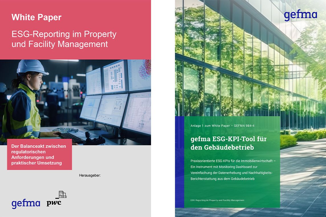 Das gefma ESG-KPI-Tool ist kostenfrei im gefma Onlineshop erhältlich – als Bestandteil des White Papers GEFMA 984-4 „ESG Reporting im Property und Facility Management”.