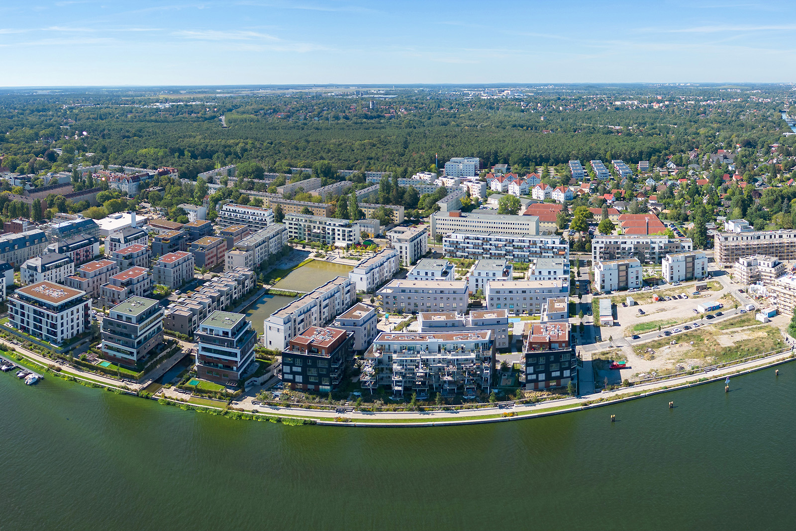 Zuvor wurde die insgesamt 10 ha große Fläche im Südosten von Berlin – zwischen Dahme-Fluss und Regattastraße – industriell, zuletzt von der VEB Berlin-Chemie, genutzt. Im Jahr 2015 fand die Grundsteinlegung für das neue Wohnquartier der Buwog statt. Seitdem sind bereits mehrere Bauabschnitte mit Architekturpreisen und für ihre Nachhaltigkeit ausgezeichnet worden. Im Quartier sind unter anderem in nachhaltiger Holz-Hybrid-Bauweise drei Baufelder mit insgesamt rund 140 Familienwohnungen entstanden. Die Buwog ist Mitglied der „Koalition für Holzbau” der Deutschen Agentur für Politikberatung GmbH (DAPB) und will mindestens 20 % ihrer Development-Pipeline von derzeit rund 55.000 Wohnung mit Holz realisieren.
