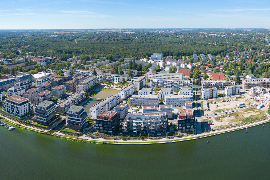 Rund 10 Jahre nach der Grundsteinlegung des Quartiers ist nun der finale Bauabschnitt in Errichtung. Das aktuell im Bau befindliche Projekt Buwog Dahmeglanz mit zwei Wohngebäuden und insgesamt 52 Eigentumswohnungen liegt direkt am Wasser. Das Ensemble befindet sich neben der rund 600 m langen Uferpromenade, die im Zuge der Quartiersentwicklung durch die Buwog realisiert wurde.