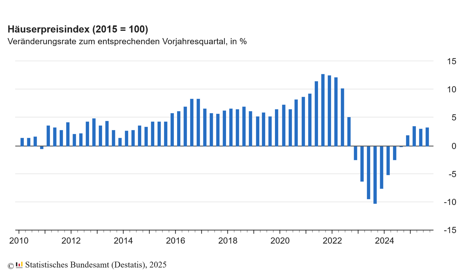 Häuserpreisindex: Preise für Wohnimmobilien im 3. Quartal 2025 um 3,3% gestiegen