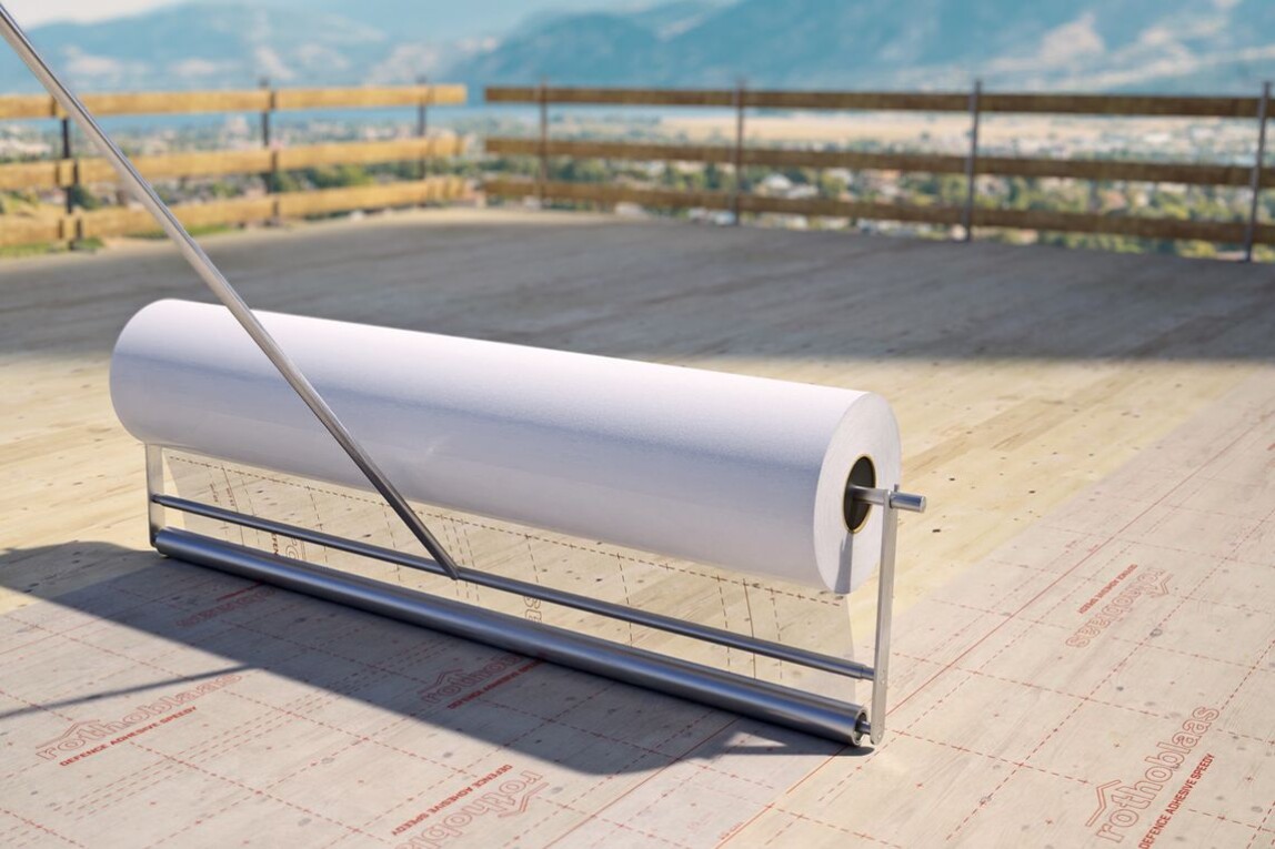 (9.1.2026) Bauzeitenabdichtungen schützen Brettsperrholzelemente nach der Vorfertigung bei Außenlagerung, Transport und Montage auf der Baustelle. Rothoblaas ergänzt sein Sortiment um die Bauzeitenabdichtung Defence Adhesive Speedy. Die lösungsmittelfreie, selbstklebende Dichtbahn kommt ohne Trennfolie aus, wodurch beim Verlegen kein Abfall entsteht. Zudem kann sie in den ersten Minuten nach dem Aufbringen bei Bedarf neu positioniert werden.