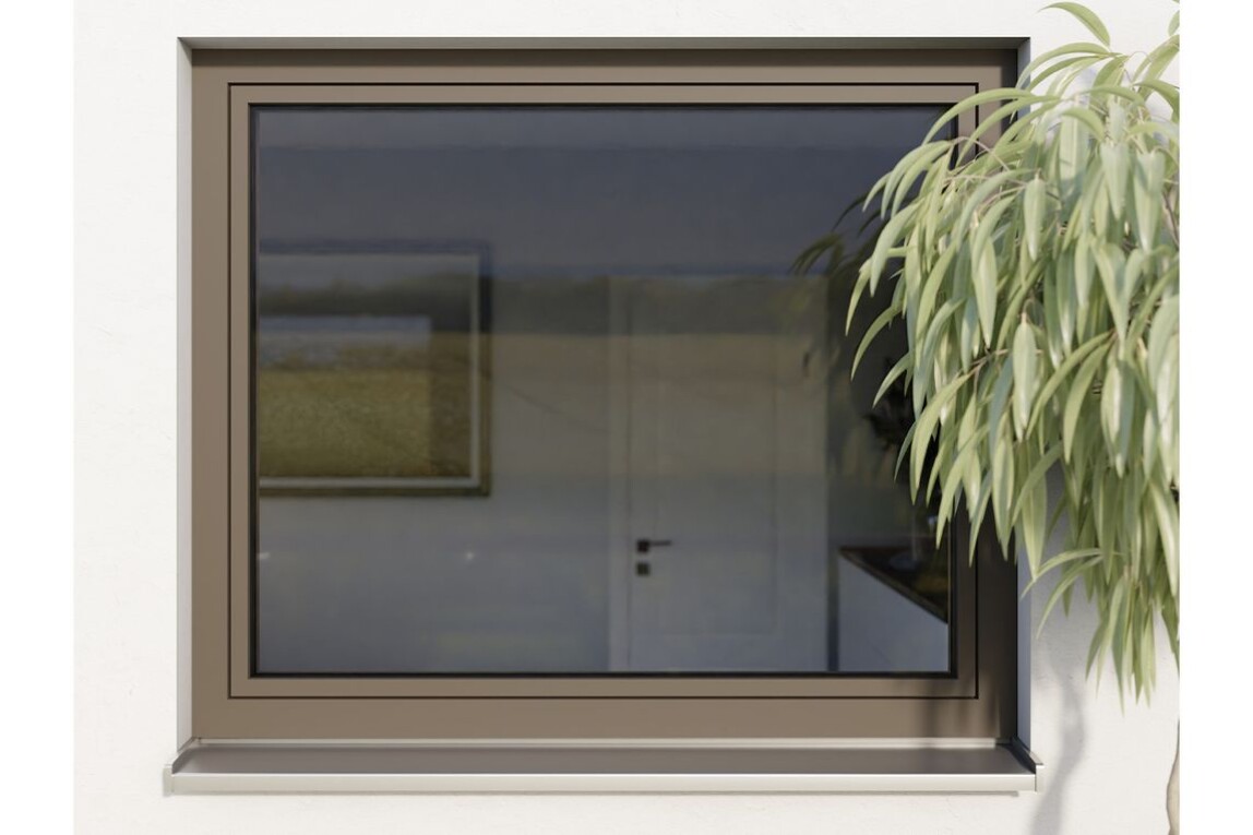 Die flächenbündigen Fenster aus dem Gealan-Linear-System integrieren sich optisch in Gebäudehüllen, sodass Rahmen und Flügel zu einer Einheit verschmelzen. Eine schmale Fuge deutet an, wo sich das Fenster öffnen lässt.
