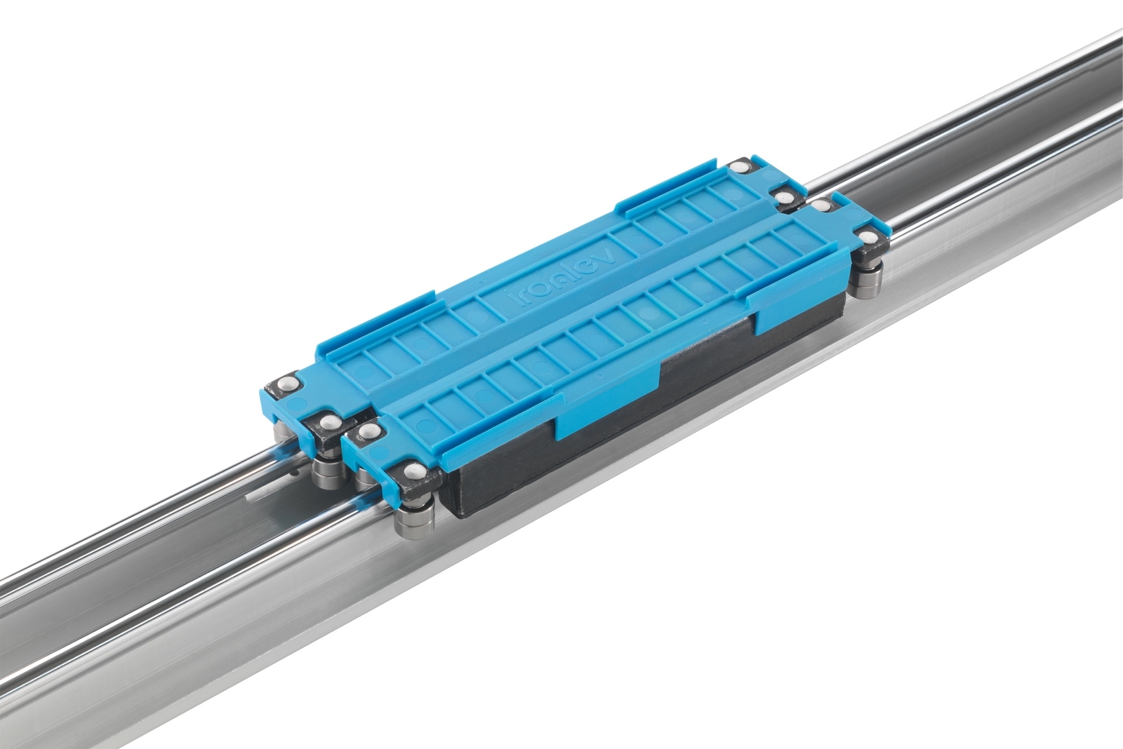 Die Magnetschwebetechnologie von Ironlev arbeitet vollständig ohne Motor und reibende Rollen. Grundlage ist ein physikalisches Prinzip: Permanentmagnet-Module gleiten kontaktlos über eine ferromagnetische Führungsschiene und überwinden so die Schwerkraft. Dadurch genügt bereits eine Zugkraft von nur zwei Newton, um ein 650 kg schweres Bauelement zu bewegen. Das modulare Konzept erlaubt es, Profilkonstruktionen ohne Änderungen an der Systemarchitektur mit der Magnetschwebetechnologie aufzurüsten.