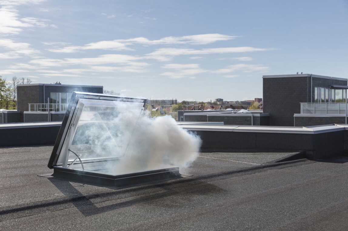 Velux Flachdachfenster für Ausstieg und Rauchabzug