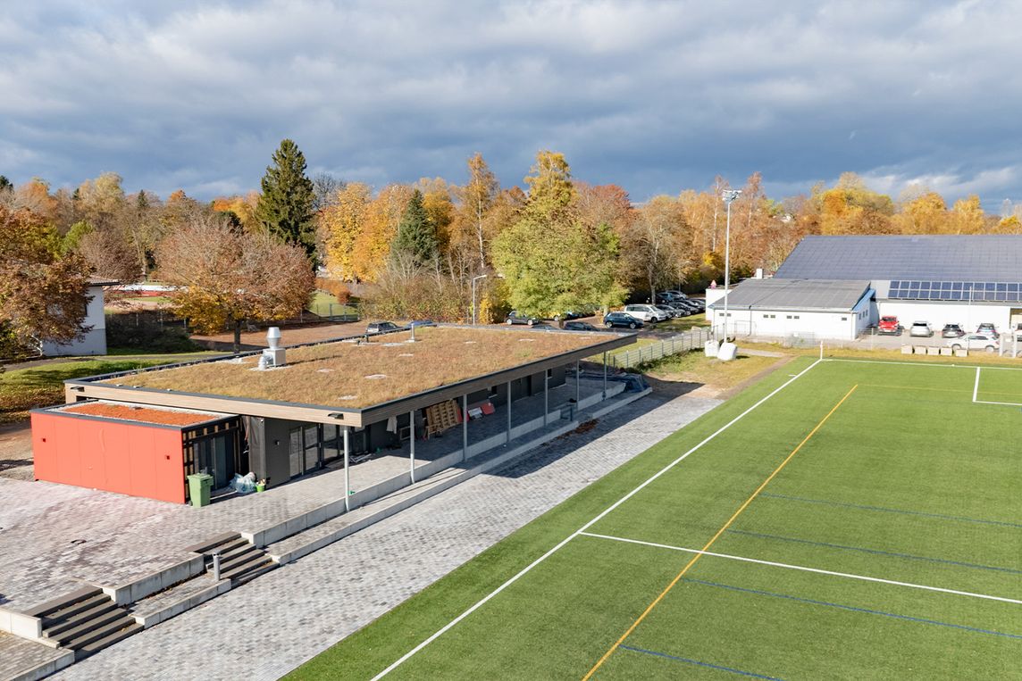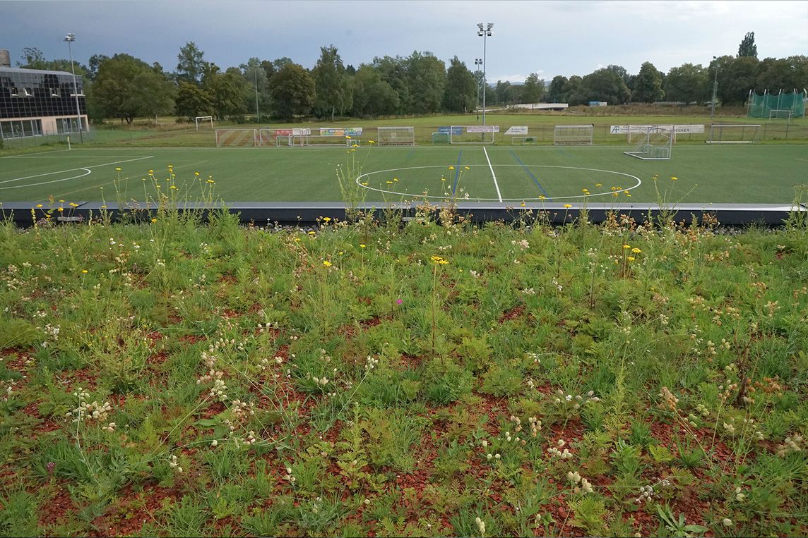(9.2.2026) Beim neuen Vereinsgebäude des Schellenberg-Sportclubs Donaueschingen (SSC) wurde ein eindrucksvolles Beispiel für eine nachhaltige Regenwasserbewirtschaftung umgesetzt. Auf 240 m² dient ein Zinco-Systemaufbau „Retentions-Gründach” der Speicherung, Nutzung und Verdunstung von Regenwasser. Zudem unterstützt die extensive Begrünung mit der Zinco-Pflanzengemeinschaft „Bienenweide” die Biodiversität und den Artenschutz.