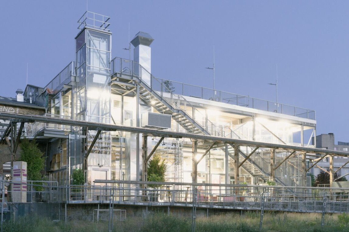 In Zusammenarbeit mit dem gemeinnützigen Verein KunstrePublik e.V. wurde die zuvor eingeschossige Lagerhalle mit einer leichten Stahl-Glas-Konstruktion umhüllt und um ein zusätzliches Geschoss ergänzt. Die Umsetzung erfolgte mit hohem Eigenleistungsanteil und innerhalb eines begrenzten, eingehaltenen Budgets. Durch den Umbau entstanden auf allen Ebenen – einschließlich Gewölbekeller und Dachterrasse – flexibel nutzbare Flächen. Das Projekt zeigt einen unkonventionellen Umgang mit architektonischen Standards und entwickelt diese bewusst weiter.