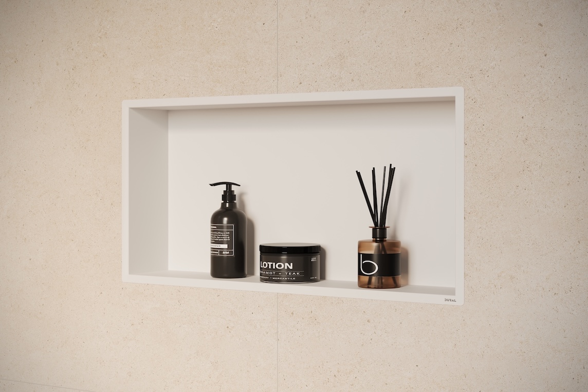 Mit Ti-Niche bietet Dural ein befliesbares Nischenelement, das werkseitig mit Durabase WP abgedichtet ist. Die Oberfläche lässt sich an die umgebenden Wandfliesen anpassen. Einsatzmöglichkeiten bestehen sowohl in der Dusche als auch im Bereich von Waschbecken oder WC.