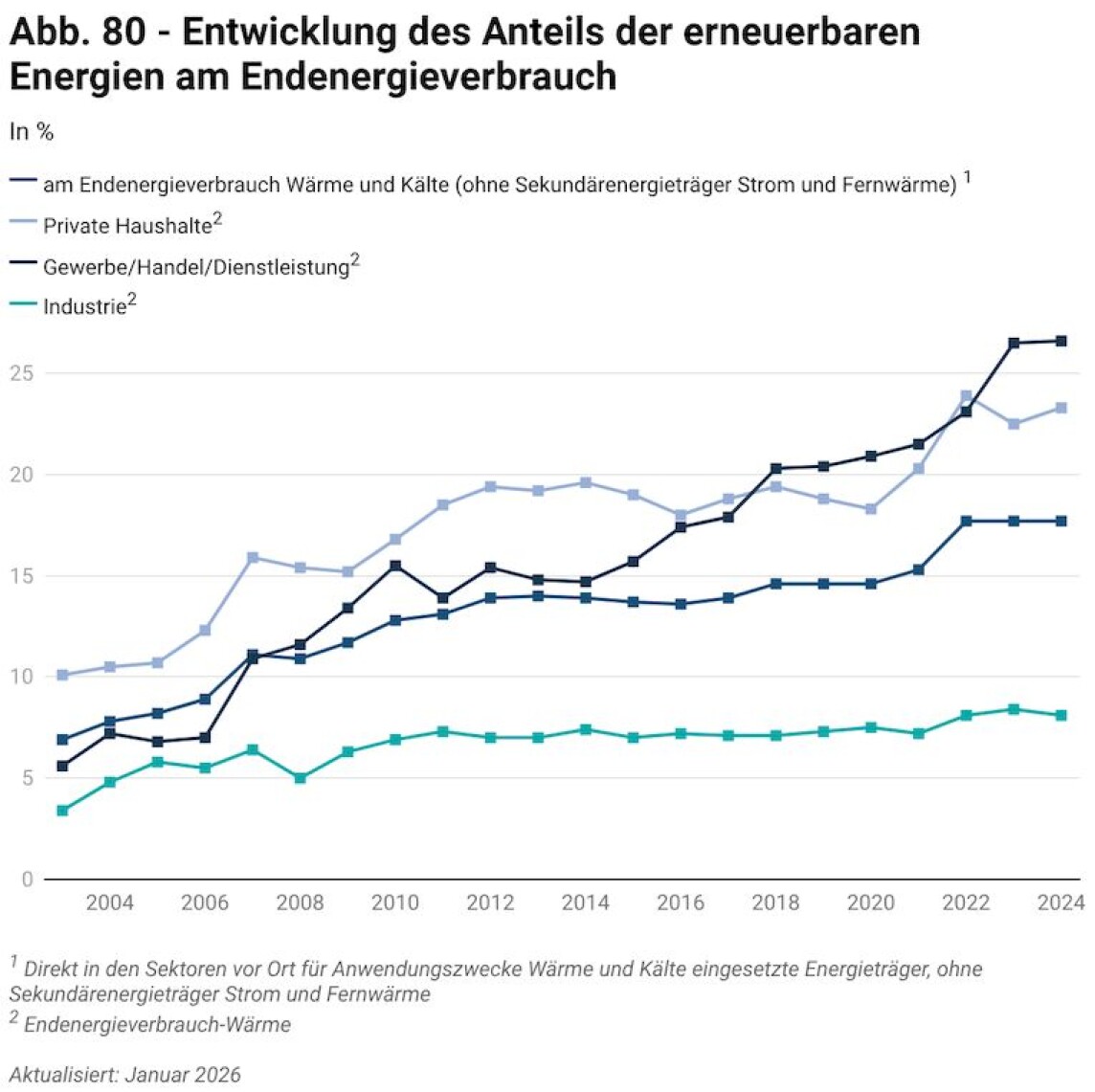(11.2.2026) Der dena-Gebäudereport 2026 zeigt, dass der Gebäudesektor weiterhin über dem vorgesehenen Emissionspfad liegt und die Klimaziele erneut nicht erreicht werden. Eine Reduktion der Emissionen auf 65 Mio. Tonnen CO₂ bis 2030 sei aber grundsätzlich möglich, erfordert jedoch dauerhaft verlässliche und kontinuierliche Maßnahmen.