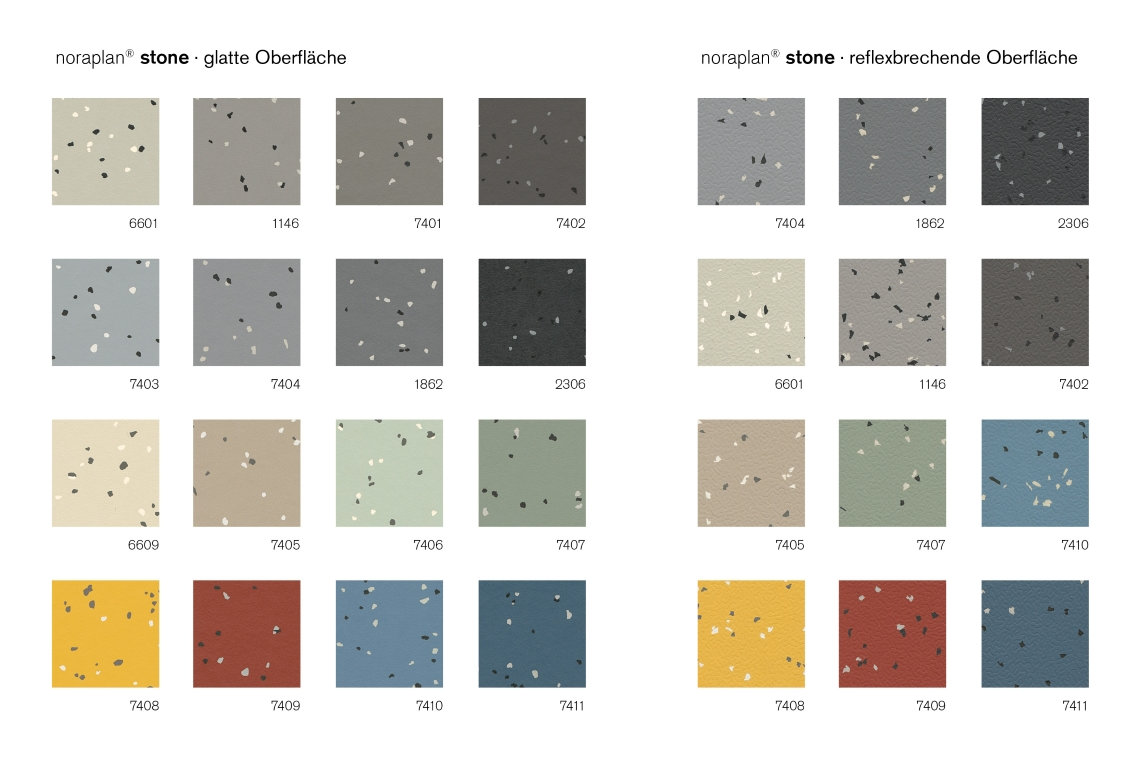 Erweitere Farbpalette für Bahnenbelag Noraplan Stone
