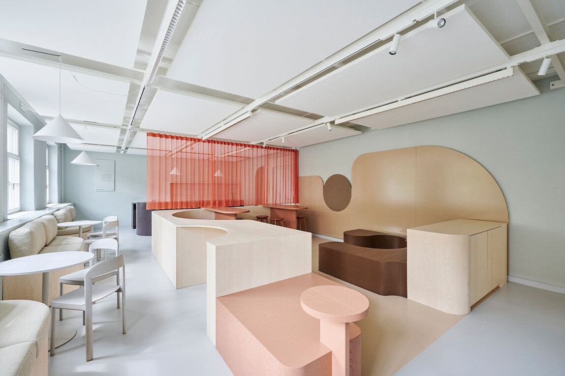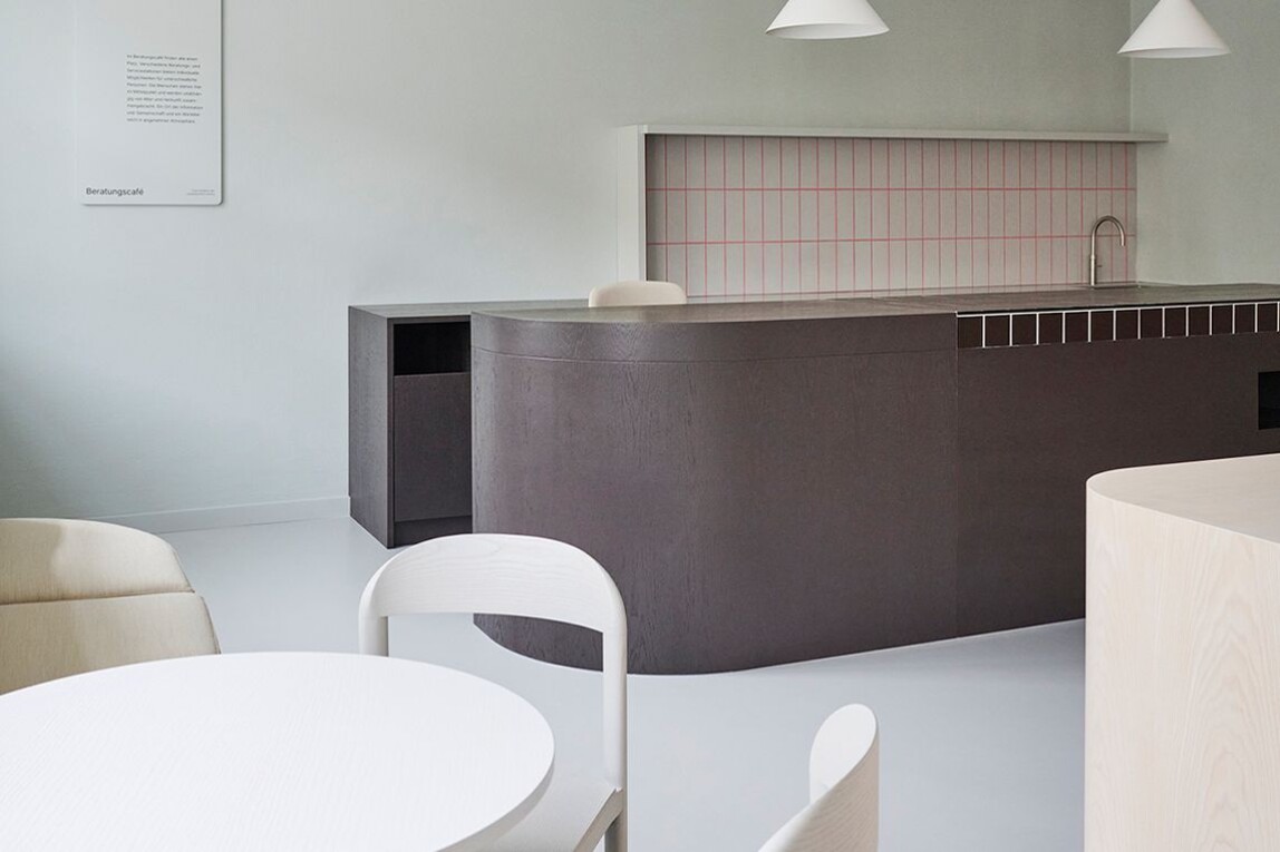 Das Gestaltungskonzept verbindet räumliche Struktur, Materialität und Farbgestaltung. Eine modulare Mäanderstruktur zieht sich als zweite Ebene durch den denkmalgeschützten Bestand und gliedert unterschiedliche Nutzungsbereiche. Die Form- und Farbwelt orientiert sich an der menschlichen Haut und steht für Offenheit, Zugänglichkeit und Bürgernähe.