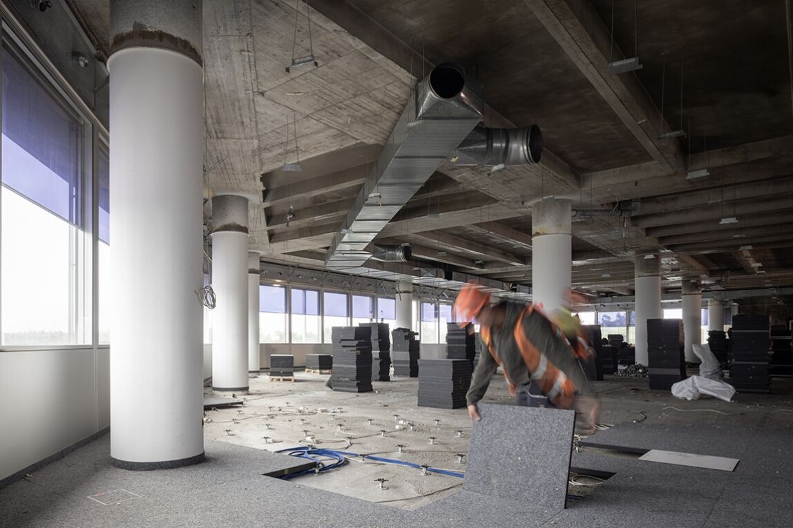 Lindner Loop: Aufbereitete Doppelbodenplatten für zirkuläres Bauen