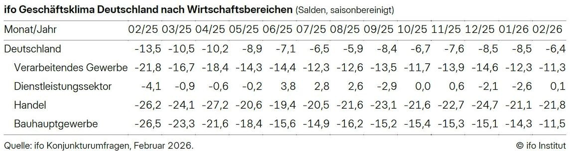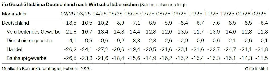 ifo-Geschäftsklimaindex Februar 2026: Bauhauptgewerbe erholt sich
