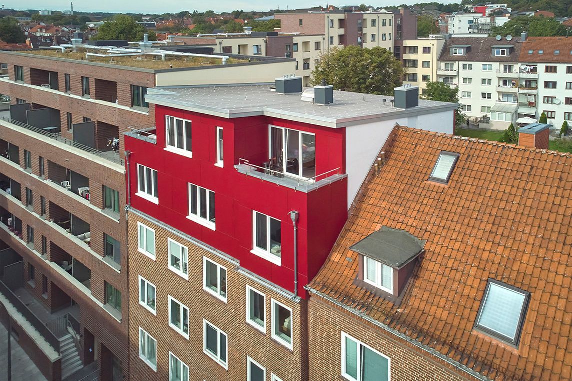 (26.2.2026) Ein Mehrfamilienhaus im Hamburger Stadtteil Harburg wurde um ein Vollgeschoss sowie ein Staffelgeschoss aufgestockt. Auf diese Weise entstanden fünf zusätzliche Wohneinheiten zwischen 28 und 70 m². Die Montage der tragenden und aussteifenden Innen- und Außenwände sowie der Decken erfolgte mithilfe von Knauf Stahl-Leichtbau-Profilen (Knauf SL-Profile). Ausschlaggebend hierfür waren das geringe Gewicht der Profile sowie ihre einfache Handhabung.
